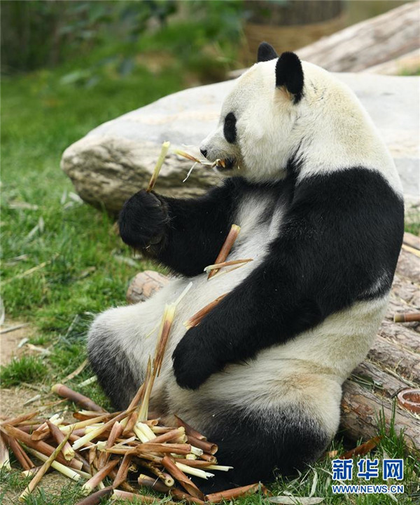 8月16日,大熊貓“和興”在西寧熊貓館內(nèi)吃竹子。青海省西寧熊貓館的四只大熊貓已經(jīng)在西寧生活了一年多,在工作人員的悉心照顧下,已經(jīng)適應(yīng)了青藏高原的氣候,身體各項(xiàng)指標(biāo)正常。新華社記者薛玉斌攝