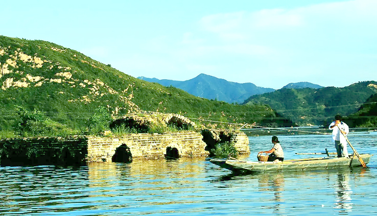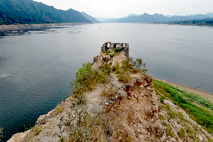 1975年至1981年,為了給天津供水,利用這里的山形地勢(shì),在灤河上游寬城、遷西、興隆三縣交界處,修建了潘家口水庫(kù)。引灤入津工程橫切長(zhǎng)城,喜峰口、潘家口兩座雄關(guān)鑲?cè)胍惶侗滩?,從而形成萬里長(zhǎng)城一處絕景——“水下長(zhǎng)城”。