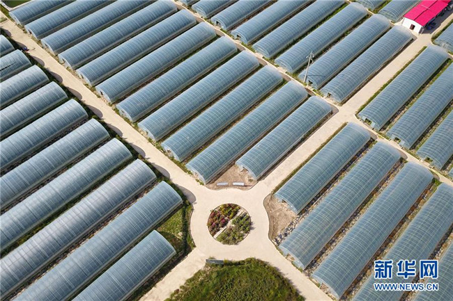 這是定西市安定區(qū)魯家溝鎮(zhèn)將臺村的花卉育苗基地(8月26日攝,無人機(jī)照片)。 新華社記者 李杰 攝