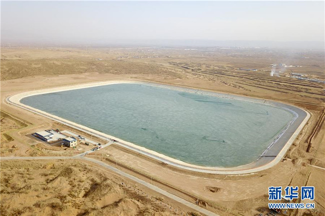 這是古浪縣黃花灘生態(tài)移民區(qū)1號調(diào)蓄水池(3月5日攝,無人機(jī)照片)。 新華社記者 范培珅 攝