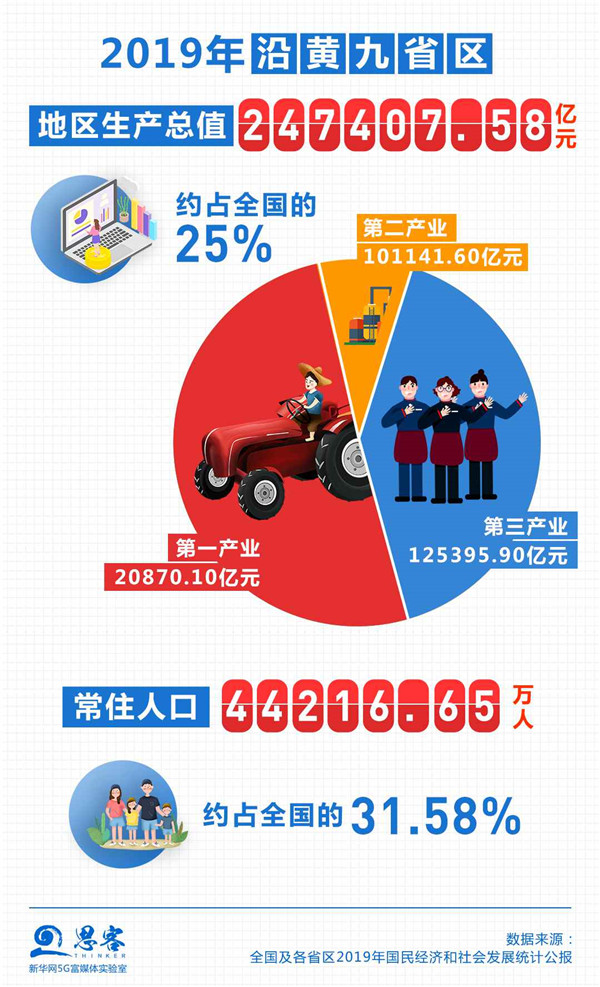 “平衡南北方,協(xié)同東中西”,黃河流域在我國(guó)經(jīng)濟(jì)社會(huì)發(fā)展中地位十分重要。流經(jīng)青海、四川、甘肅、寧夏、內(nèi)蒙古、陜西、山西、河南、山東9個(gè)省區(qū)的黃河,流域內(nèi)省份2019年底總?cè)丝?.42億,占全國(guó)的31.58%;地區(qū)生產(chǎn)總值24.74萬億元,約占全國(guó)25%。