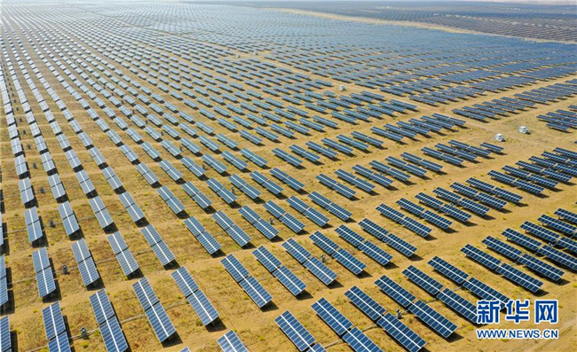 日前,由中建中環(huán)工程有限公司承建的內(nèi)蒙古達(dá)拉特旗光伏發(fā)電領(lǐng)跑獎(jiǎng)勵(lì)基地1號(hào)項(xiàng)目順利建成完工,該項(xiàng)目位于庫(kù)布其沙漠中,建成后與基地內(nèi)一期光伏電站連成一體,占地面積約120萬(wàn)平方米。 新華社記者 連振 攝