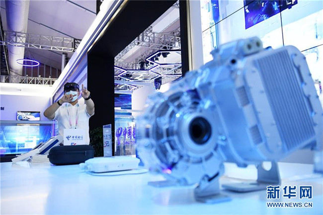 9月15日,工作人員在2020線上智博會上演示“5G+AR遠(yuǎn)程運維技術(shù)”。 新華社記者 唐奕 攝