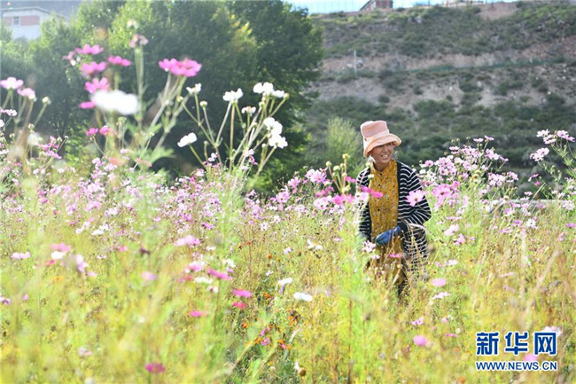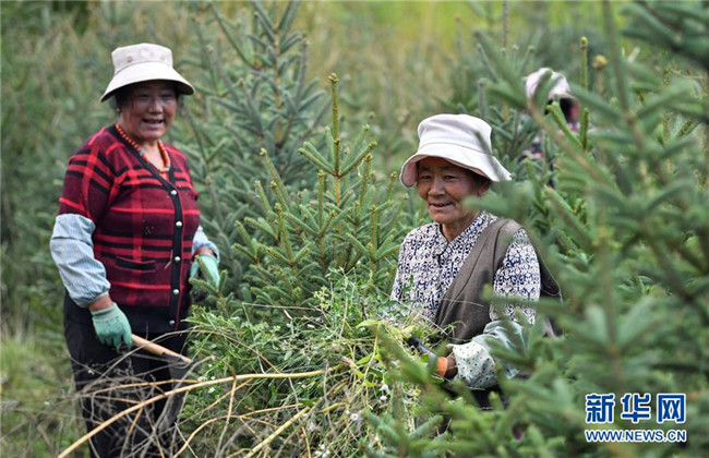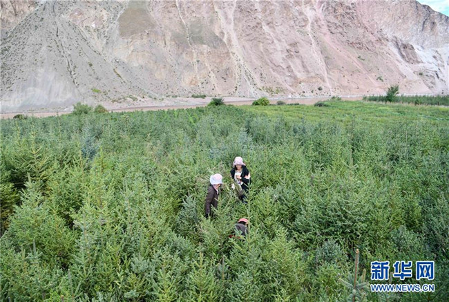 西藏昌都察雅縣卡貢鄉(xiāng)卡貢村村民在苗圃產(chǎn)業(yè)基地進(jìn)行除草作業(yè)(9月28日攝)。新華社記者 晉美多吉 攝
