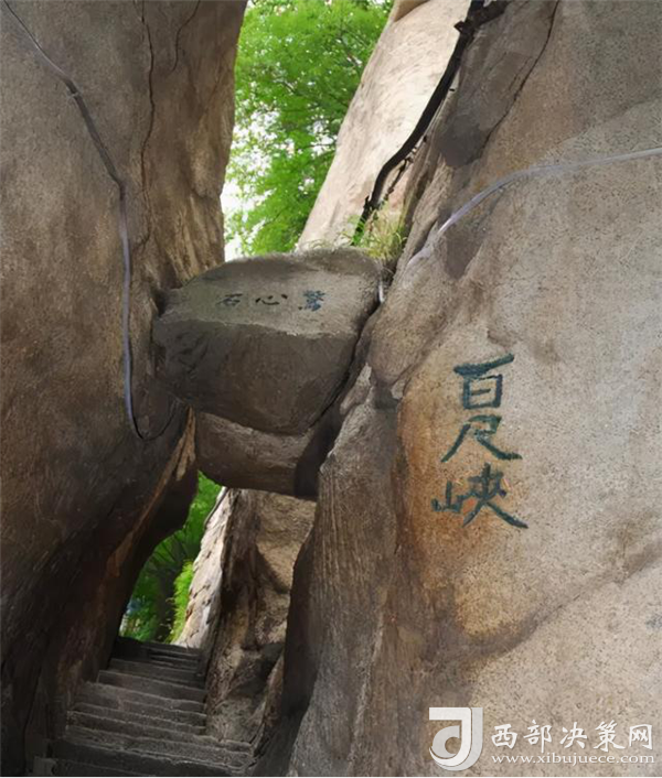 百尺峽,"幢去峽復(fù)來,天險(xiǎn)不可瞬。雖云百尺峽,一尺一千仞。"過千尺幢向北折即到"百尺峽",它是登華山的第二個(gè)險(xiǎn)境。