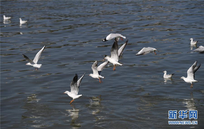 這是11月11日在重慶市江津區(qū)幾江長江大橋一帶拍攝的紅嘴鷗。新華社記者 王全超 攝