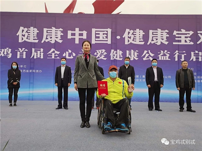 啟動儀式上,寶雞籍殘奧會鐵餅冠軍范良受聘擔(dān)任本次健康公益行形象大使,他曾代表中國出戰(zhàn)2004雅典殘奧會,2008北京殘奧會,2012年倫敦殘奧會,兩次以優(yōu)異的成績獲得金牌,并打破世界紀(jì)錄,為中國人民贏得了榮譽(yù)。其中,2004雅典殘疾人奧運會、2008北京殘奧會鐵餅金牌得主。退役后帶領(lǐng)寶雞地區(qū)殘疾人創(chuàng)業(yè),一直致力于公益事業(yè)發(fā)展。
