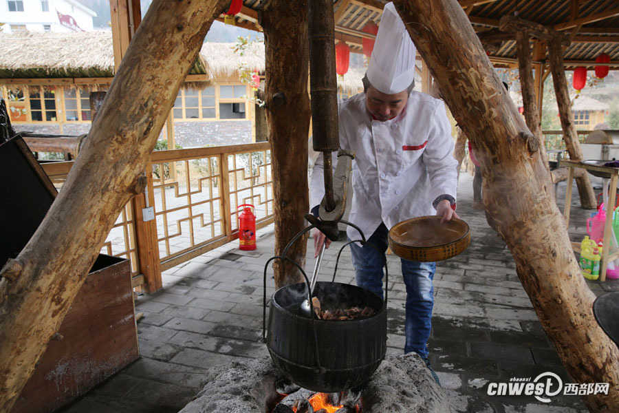 72行手藝人在作坊小鎮(zhèn)上班,中午到食堂吃免費工作餐。
