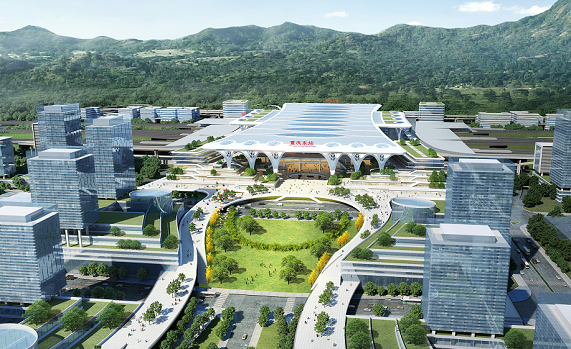 以重慶東站鐵路綜合交通樞紐的設計為例,該樞紐在設計時以城市綜合交通中心為核心,樞紐及周邊布置商業(yè),強化站城聯(lián)系,融合交通、商業(yè)、餐飲、休閑、文化、娛樂、景觀等多種功能于一體進行規(guī)劃建設,形成統(tǒng)一開放的“山、景、城”融合一體的城市公共空間。