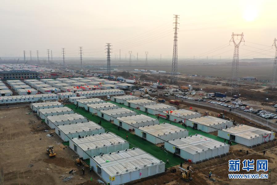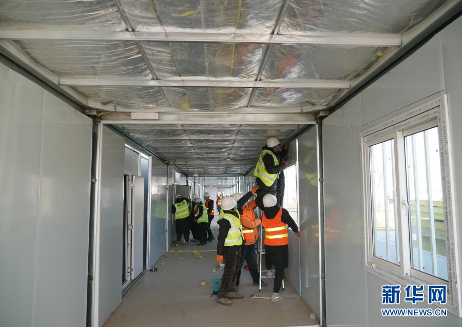1月18日,在河北省石家莊市黃莊公寓隔離場(chǎng)所項(xiàng)目工地,工人在安裝集成房屋。新華社記者 楊世堯 攝