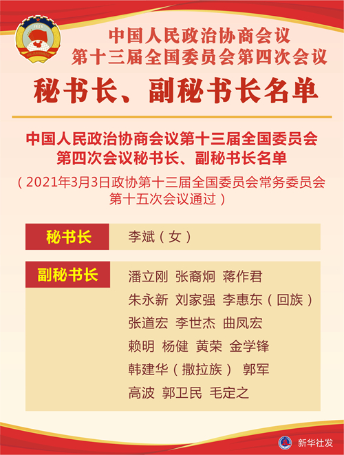 中國人民政治協(xié)商會議第十三屆全國委員會第四次會議秘書長、副秘書長名單