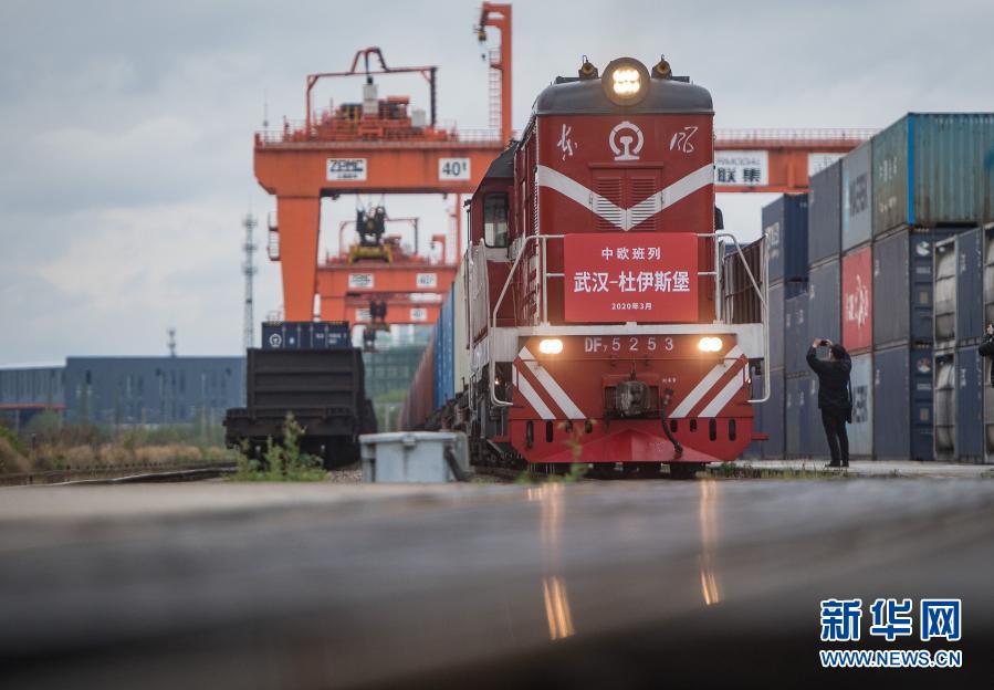 開往德國(guó)杜伊斯堡的中歐(武漢)班列從中鐵聯(lián)集武漢中心站駛出(2020年3月28日攝)。這是自疫情防控以來,從武漢開出的首趟中歐班列,標(biāo)志著中歐班列(武漢)恢復(fù)常態(tài)化運(yùn)營(yíng)。新華社記者 肖藝九 攝