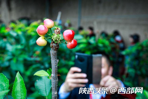 在櫻桃棚內(nèi),紅色的櫻桃一簇一簇簇擁在樹上,在綠油油的樹葉間顯得嬌艷欲滴。路寶告訴記者,子長的櫻桃可以趕在其他產(chǎn)地的櫻桃未上市前售賣,因此市場行情好,加上保存期長,適合現(xiàn)代物流的發(fā)展,從而產(chǎn)生了比較好的收益。“我們這個櫻桃可以在其他櫻桃還沒有上市的時候,借助現(xiàn)代物流賣到全國各地,甚至可以賣到櫻桃的主產(chǎn)區(qū)去。”
