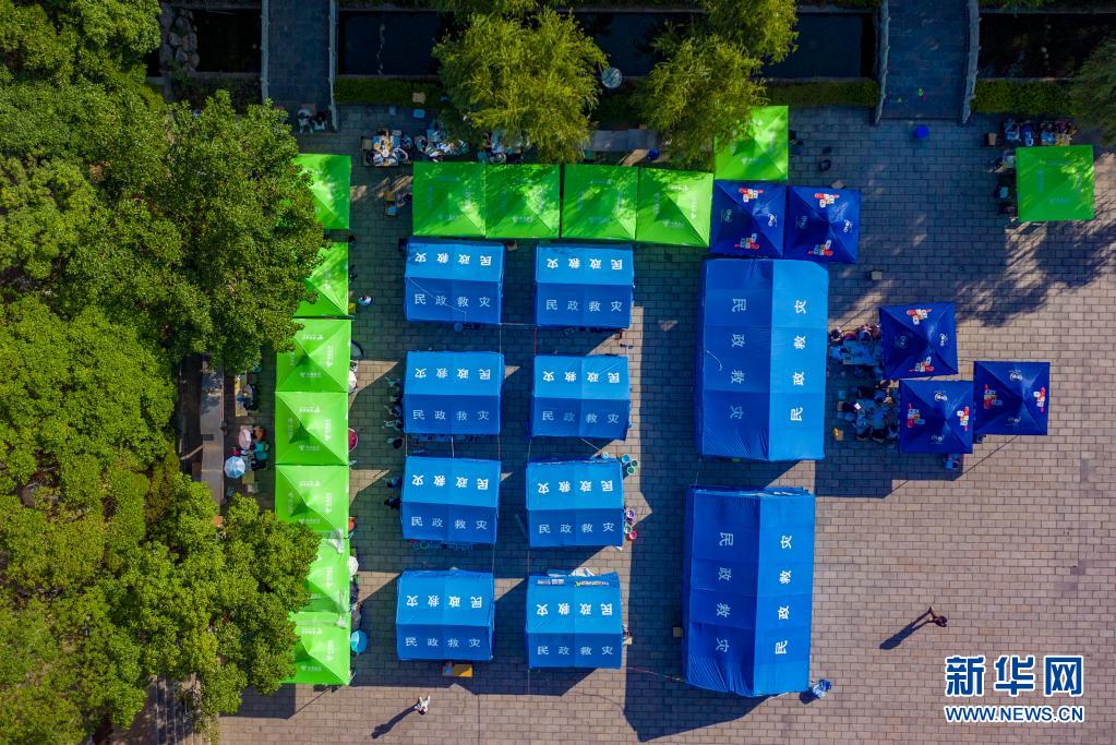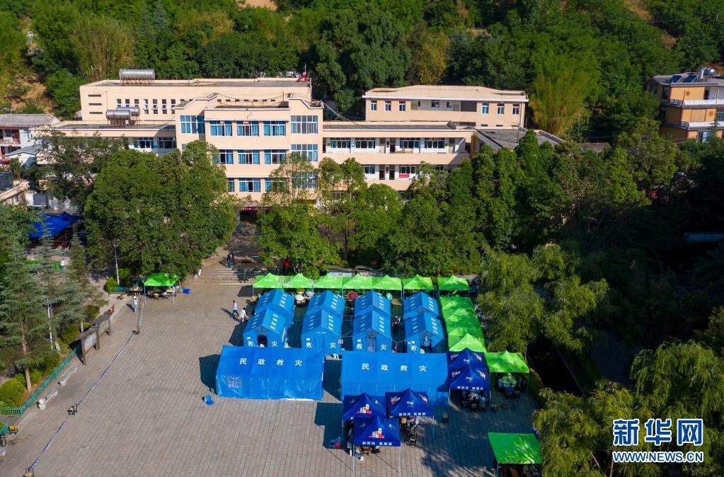 5月24日拍攝的漾濞一中操場(chǎng)上搭建起的帳篷(無(wú)人機(jī)照片)。新華社記者胡超攝