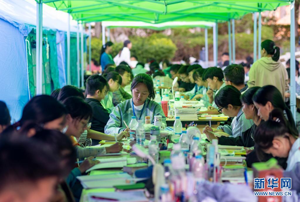 5月24日,漾濞一中高三年級(jí)學(xué)生在帳篷下學(xué)習(xí)。新華社記者胡超攝