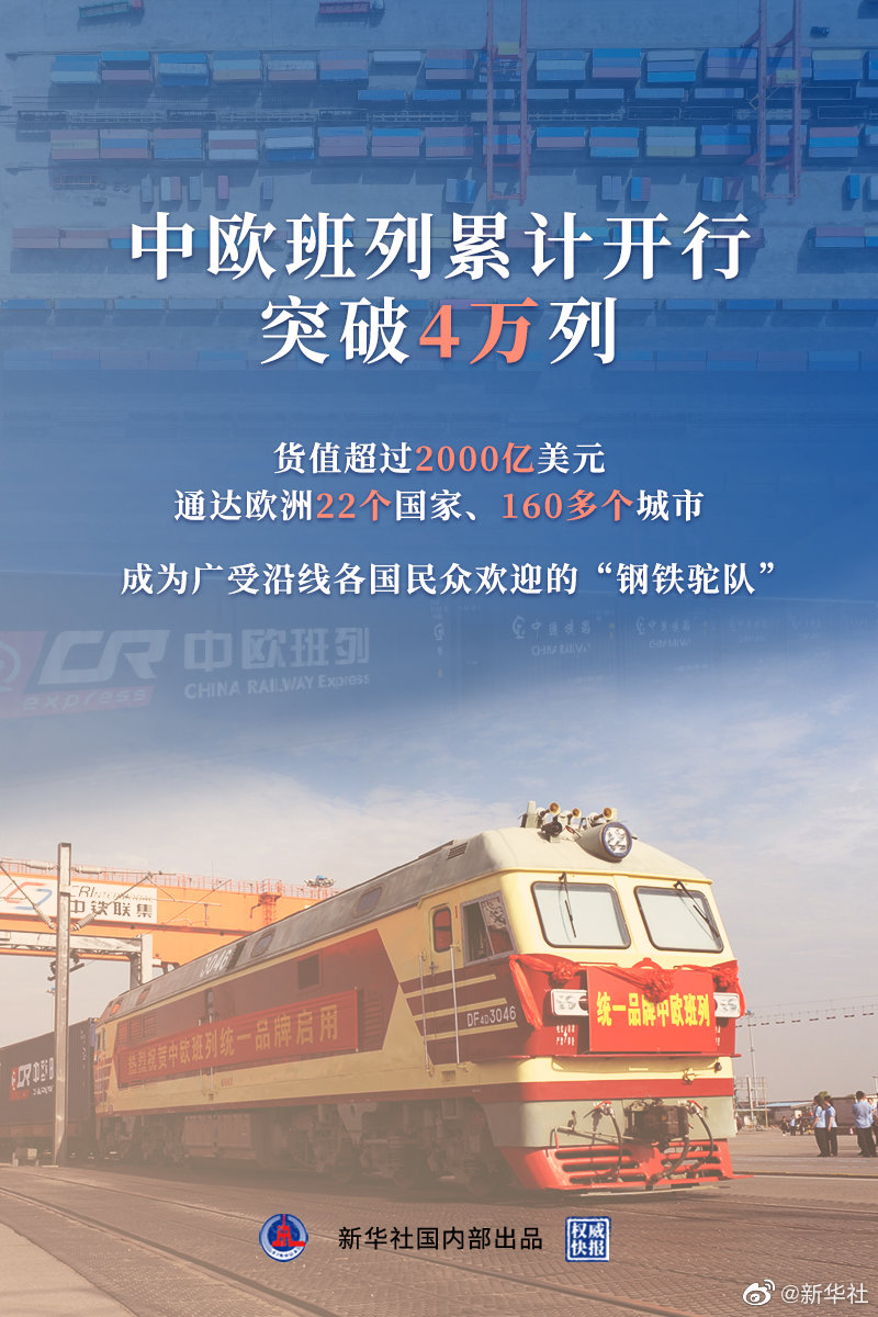 推進(jìn)“一帶一路”建設(shè)工作領(lǐng)導(dǎo)小組辦公室20日召開中歐班列統(tǒng)一品牌五周年工作座談會。截至目前,中歐班列累計開行突破4萬列,合計貨值超過2000億美元,打通了73條運行線路,通達(dá)歐洲22個國家160多個城市。新冠肺炎疫情發(fā)生以來,中歐班列累計向歐洲發(fā)運1199萬件防疫物資。2011年3月,首趟中歐班列從重慶發(fā)出開往德國杜伊斯堡,開啟中歐班列創(chuàng)新發(fā)展的序章。2016年6月20日,統(tǒng)一品牌中歐班列首達(dá)歐洲(波蘭)儀式在波蘭華沙舉行。(記者安蓓,海報設(shè)計楊軼群)