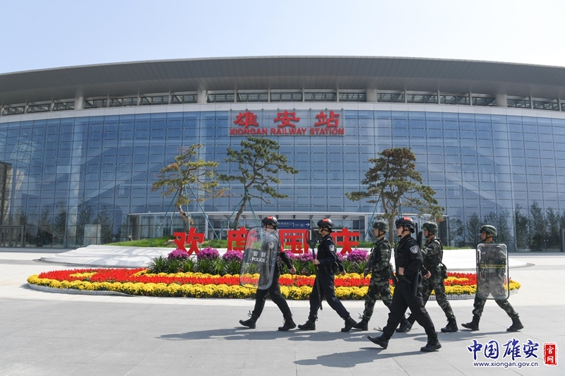 雄安站樞紐片區(qū)公安分局和武警河北總隊保定支隊某部正在進行聯(lián)合巡邏。任雙歡 攝