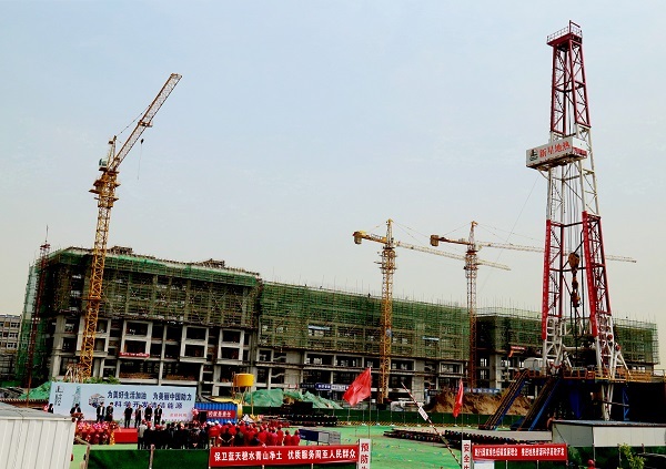 西安市周至縣錦華苑地熱集中供熱項目開鉆現(xiàn)場