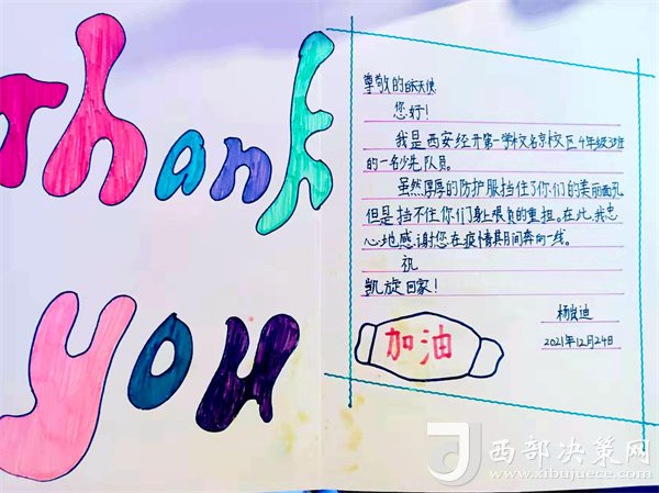 三九嚴(yán)冬,雪花紛飛,寒風(fēng)刺骨。12月24日,一大早,我和隊員們早早到指定地點集合,等待分配任務(wù)??吹阶o理姐妹們個個兒都精神飽滿、整裝待發(fā),我的心情是又緊張又激動。當(dāng)我們到達任務(wù)采集地點時,社區(qū)工作人員和志愿者同志為我們搭建了一個簡易帳篷。帳篷四翼隨風(fēng)飄揚,凜冽的寒風(fēng)襲進帳篷,如同置身風(fēng)口一樣。一切準(zhǔn)備就緒,換上防護用品,立即開展工作。室外溫度達零下五度,我們認(rèn)真地為每位居民采集核酸。采集完核酸后,做到一人一消,隊員的手都凍得通紅麻木,已經(jīng)感覺不到疼痛,面屏上都已經(jīng)霧氣籠罩,但是,隊員們沒有一個人喊累、沒有一個人退縮,更沒有一個人喊停。這時,耳畔傳來一聲,“孩子,辛苦了,這是我給你們送的熱水,” “我家有熱寶,給你們?nèi)∪∨?rdquo;“姐姐,謝謝你們,”說著,一個小女孩走過來,送來兩張自己做的小賀卡,上面寫的都是感謝的話語。