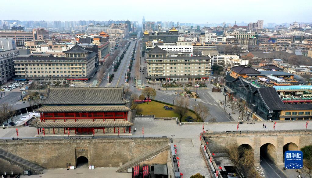 12月28日拍攝的西安市永寧門(mén)附近區(qū)域(無(wú)人機(jī)照片)。新華社記者 陶明 攝