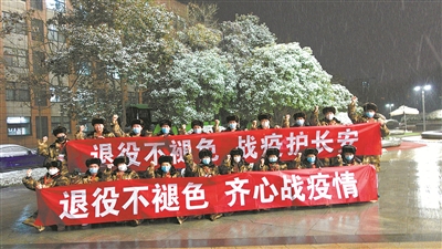 歲末,突如其來的新冠肺炎疫情,讓陜西省西安市按下了暫停鍵。西安高校云集,學(xué)子匯聚。在疫情防控的關(guān)鍵時(shí)刻,一封封“請(qǐng)戰(zhàn)書”、一個(gè)個(gè)紅手印出現(xiàn)在各大高校。“我們是退役軍人,我們志愿加入這場沒有硝煙的戰(zhàn)爭”“戎裝雖脫,兵心不改”“我們?cè)?jīng)過部隊(duì)培養(yǎng),緊急關(guān)頭當(dāng)然要挺身而出”……西安交通大學(xué)強(qiáng)軍先鋒隊(duì)、西安建筑科技大學(xué)戰(zhàn)旗中隊(duì)、西安郵電大學(xué)國防青年突擊隊(duì)、西安外事學(xué)院利刃先鋒退役軍人志愿協(xié)會(huì)、陜西國防工業(yè)職業(yè)技術(shù)學(xué)院軍魂學(xué)社、長安大學(xué)弘毅中隊(duì)……一支支由退役大學(xué)生士兵組成的學(xué)生社團(tuán)主動(dòng)請(qǐng)纓,戰(zhàn)斗在校園疫情防控一線。