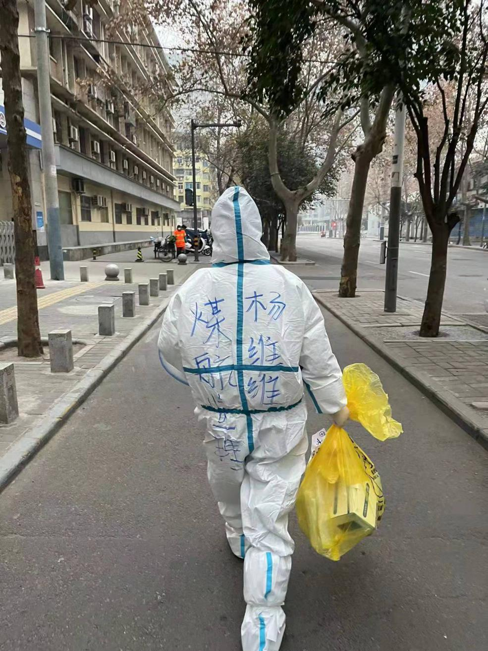 12月23日,全城封閉,西安進(jìn)入戰(zhàn)備狀態(tài)。我的鄰居已被列為重點(diǎn)隔離觀察對(duì)象,每天都有穿著白色防護(hù)服的醫(yī)護(hù)人員上門進(jìn)行核酸檢測(cè),第一次讓我感到疫情風(fēng)險(xiǎn)近在眼前,但更讓我擔(dān)心的還是鄰居的日常生活和身體狀況,經(jīng)與防疫人員溝通,我負(fù)責(zé)起了為鄰居取菜,扔垃圾等事情,保障鄰居安心隔離。