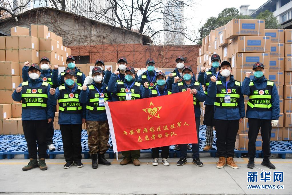 退役軍人志愿突擊隊(duì)隊(duì)員搬運(yùn)防疫物資。新華社記者 張博文 攝