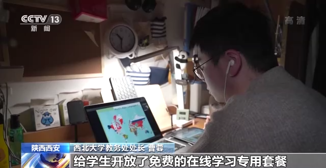 西北大學(xué)教務(wù)處處長(zhǎng) 曹蓉:我們擔(dān)心網(wǎng)絡(luò)卡頓,西北大學(xué)的信息化處充分挖掘網(wǎng)絡(luò)資源,擴(kuò)容了帶寬,給學(xué)生開放了免費(fèi)的在線學(xué)習(xí)專用套餐。