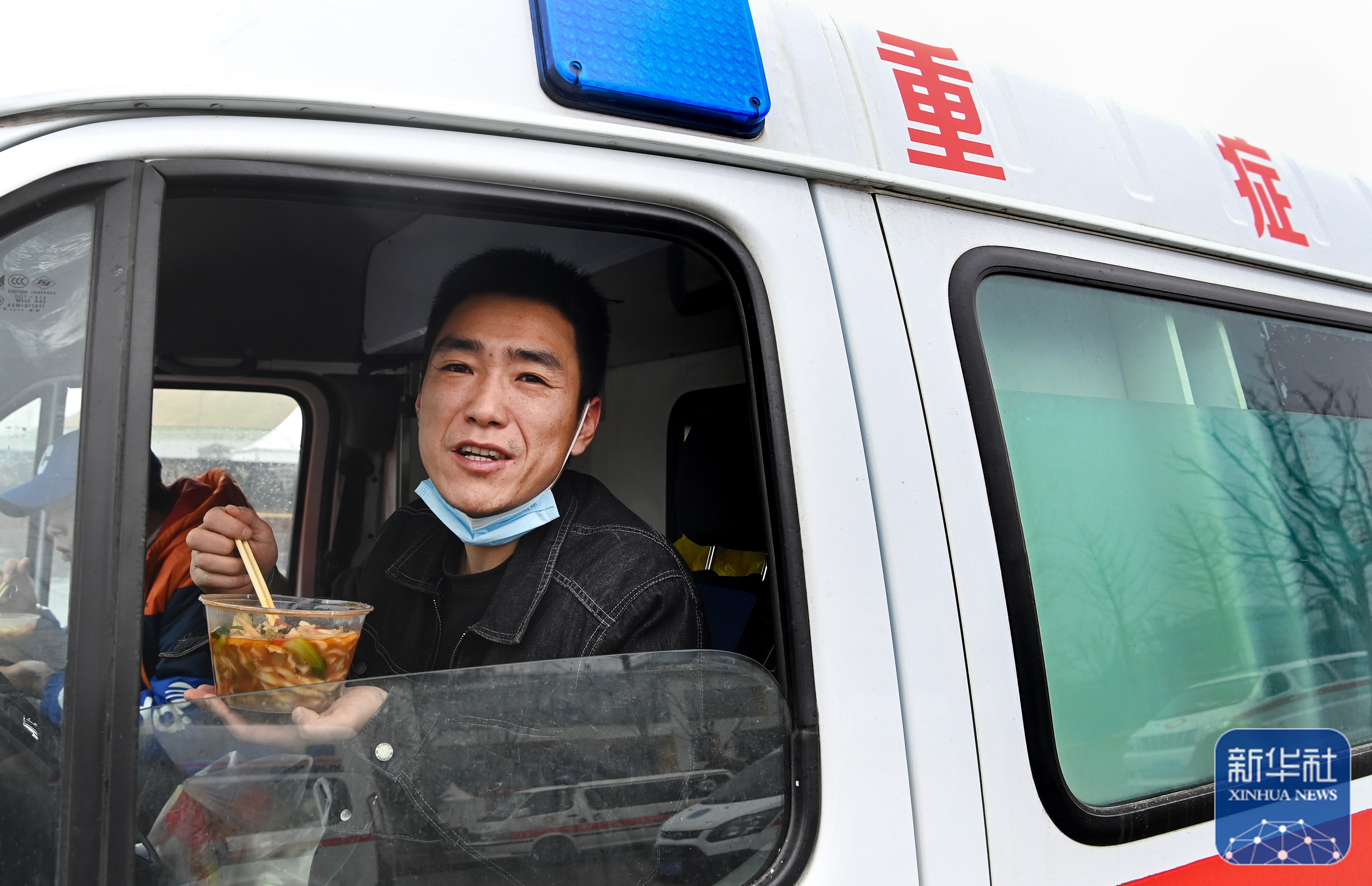 1月8日,來自河南的救護車司機吃上“愛心餐”。