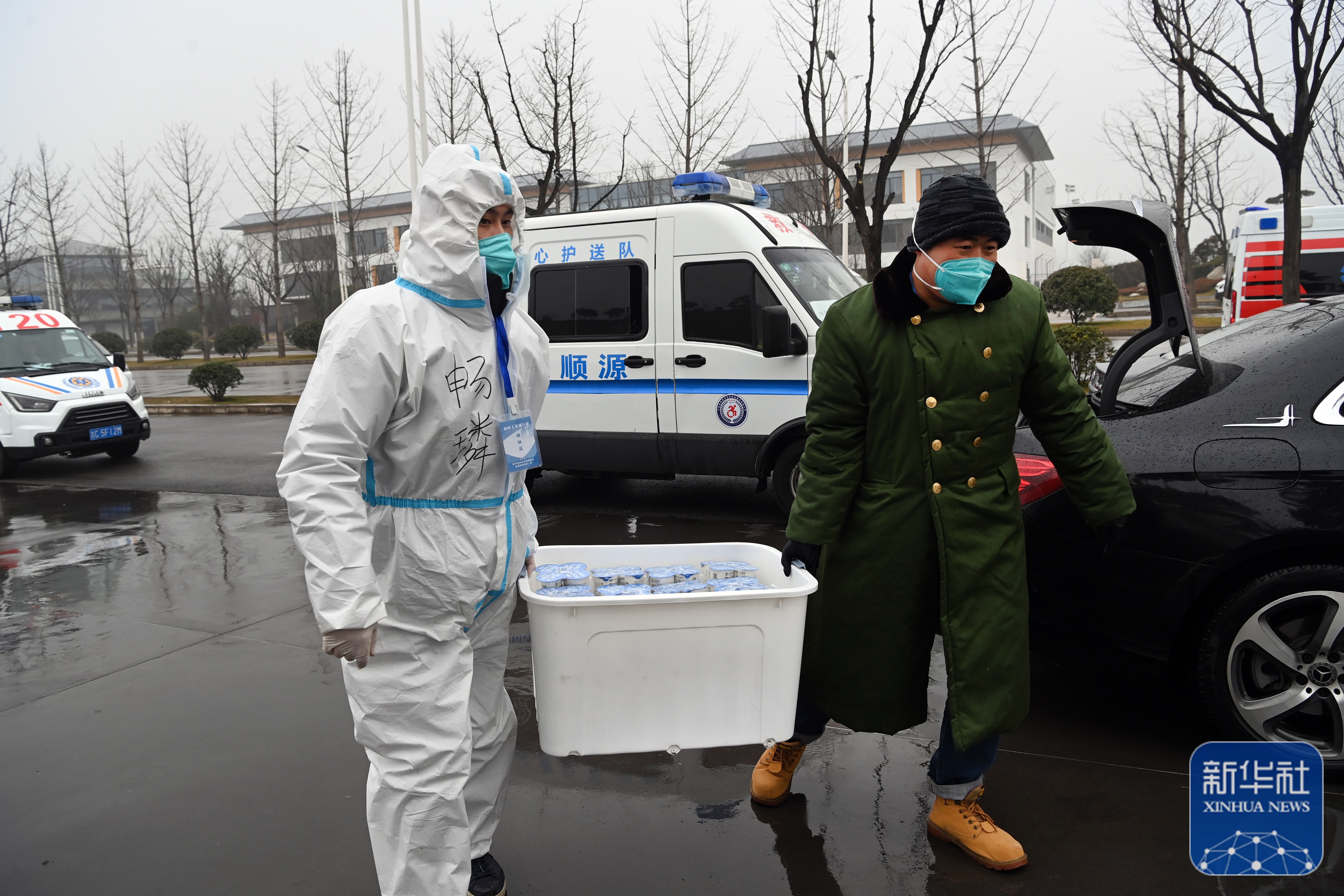 1月8日,志愿者在為防疫一線人員運送“愛心餐”。