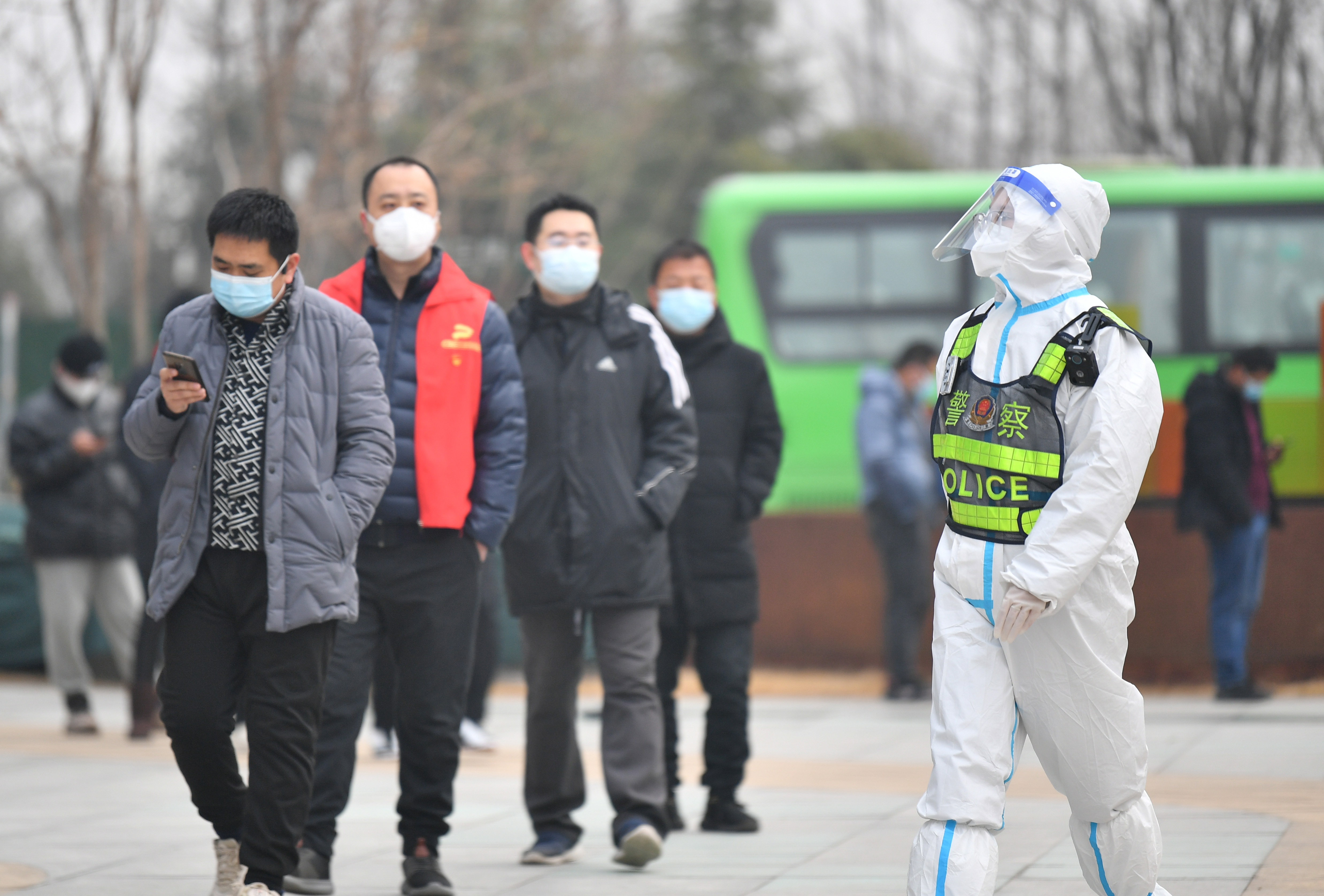 1月10日,西安市公安局浐灞生態(tài)區(qū)分局民警在轄區(qū)內一處核酸檢測點執(zhí)勤。新華社記者 張博文 攝