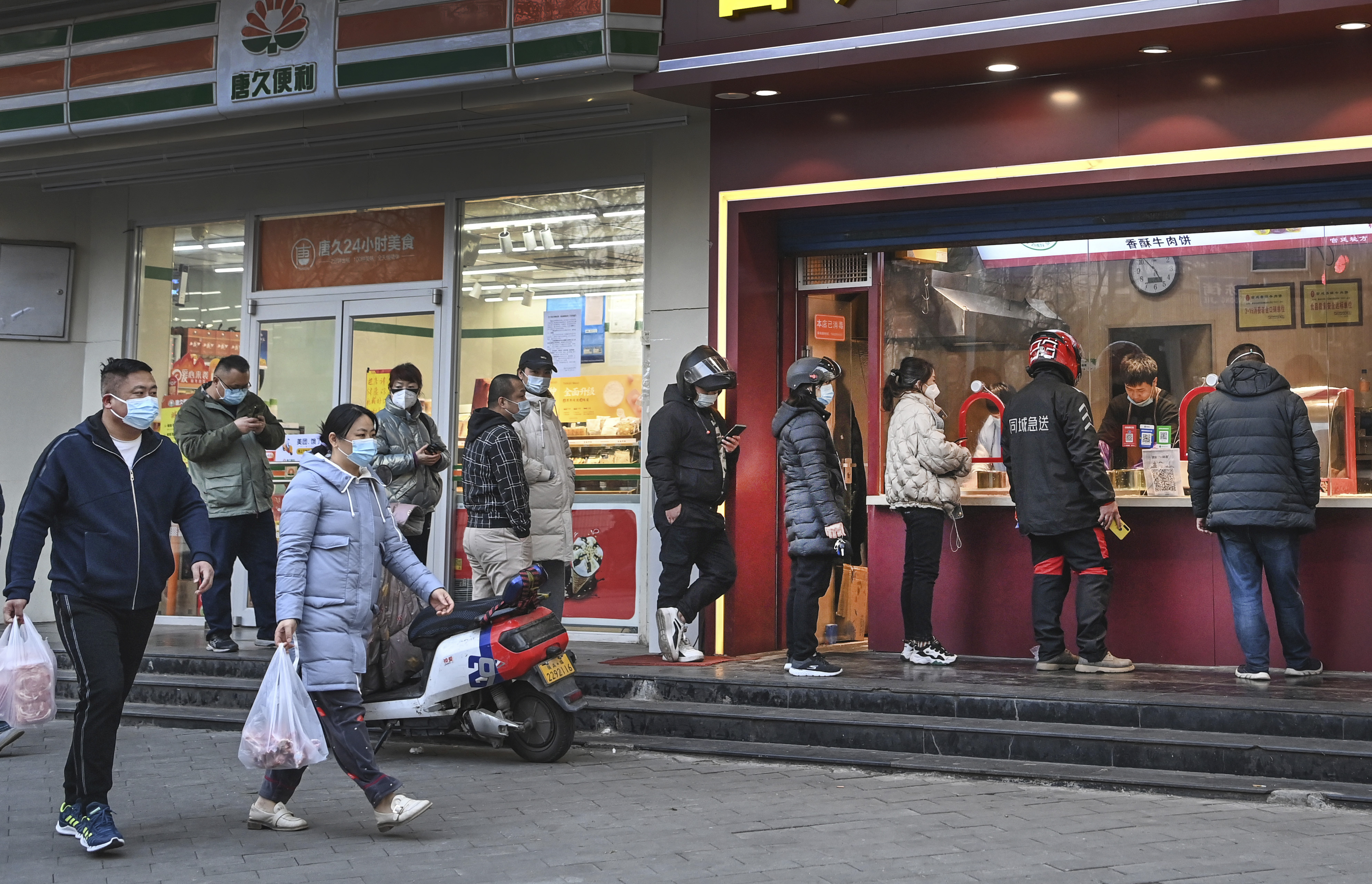 1月17日,西安市未央區(qū)一家小吃店開始營業(yè),為附近居民送餐上門。新華社記者 陶明 攝