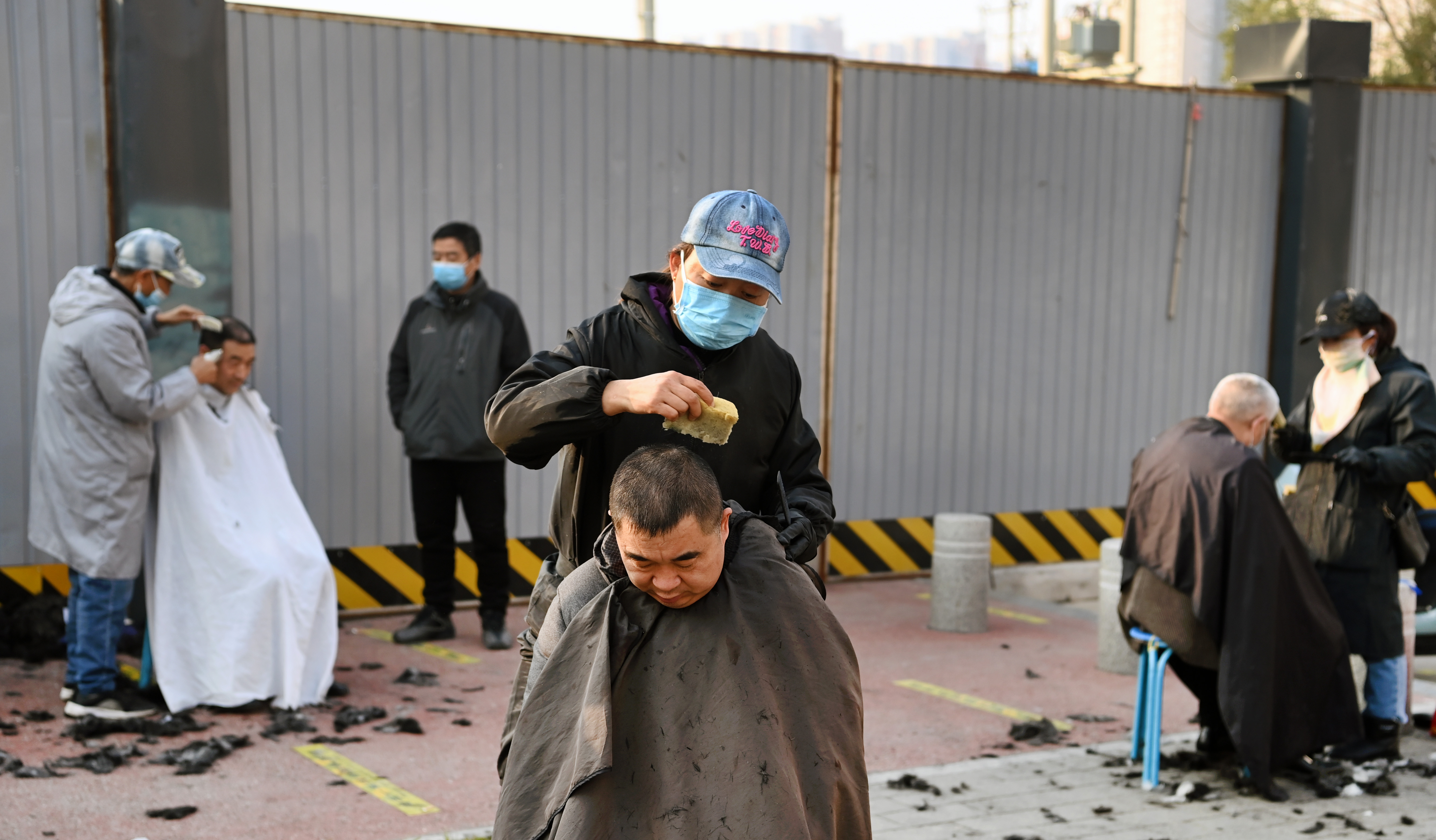 1月17日,西安市未央區(qū)一家理發(fā)店在路邊設點,方便居民理發(fā)。