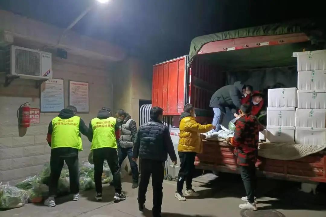 志愿者們在搬運(yùn)生活物資。新城區(qū)委組織部供圖