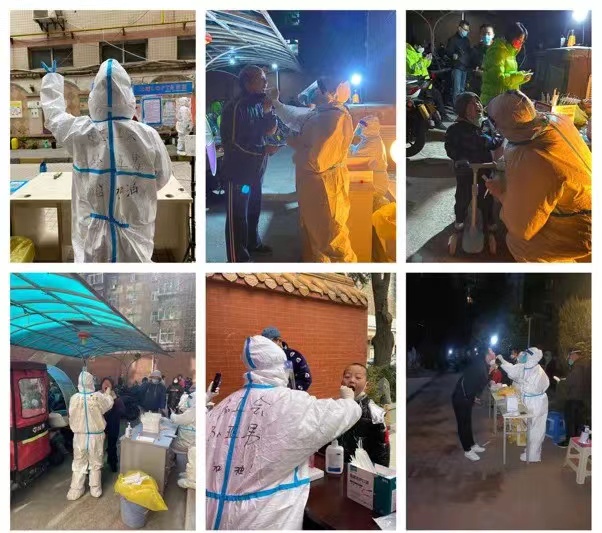 孫亞男在社區(qū)各個地點(diǎn)做核酸檢測。蓮湖區(qū)委組織部供圖