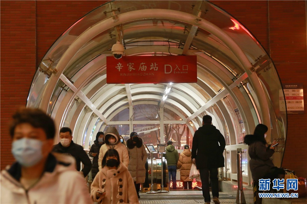 1月25日,西安地鐵三號(hào)線辛家廟站D口來(lái)往的進(jìn)出站乘客。新華網(wǎng) 王智超 攝