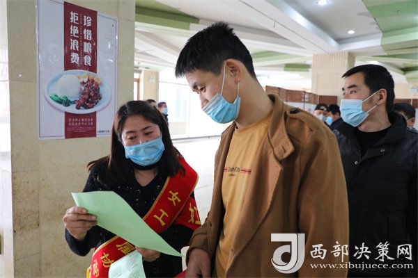 在山陽煤礦職工食堂里,大家都正在忙碌著打飯,但有一個畫面卻溫暖著每一個人的心窩,記者用鏡頭捕捉到這樣一幅畫面,身為家屬協(xié)管員的趙翠芝,給每一位進(jìn)來的職工發(fā)放疫情知識宣傳單,并耐心的給她們講解其中的內(nèi)容以及疫情防護(hù)注意事項。