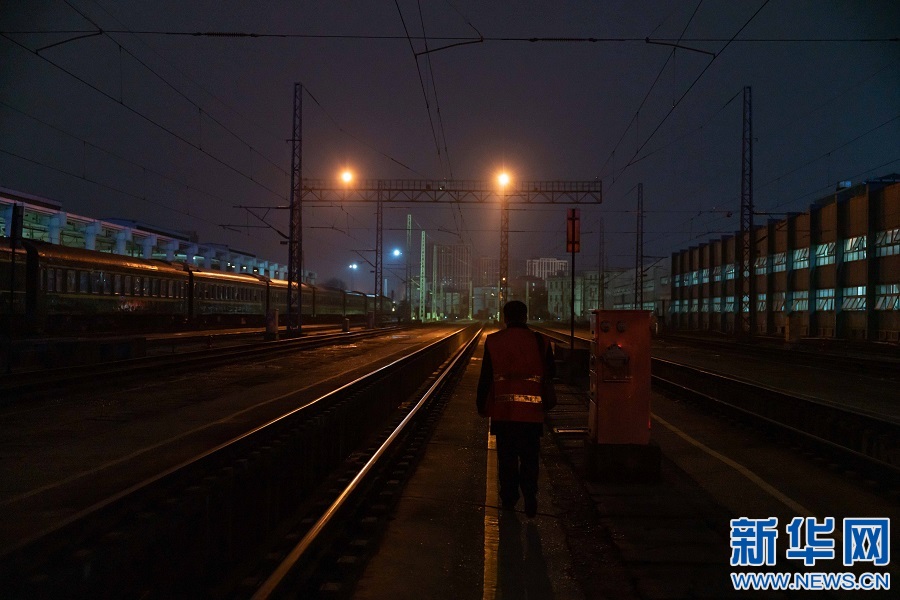 檢查完動(dòng)車組,蘇盛行走在列車停車場內(nèi)。新華網(wǎng)發(fā) 趙磊 攝