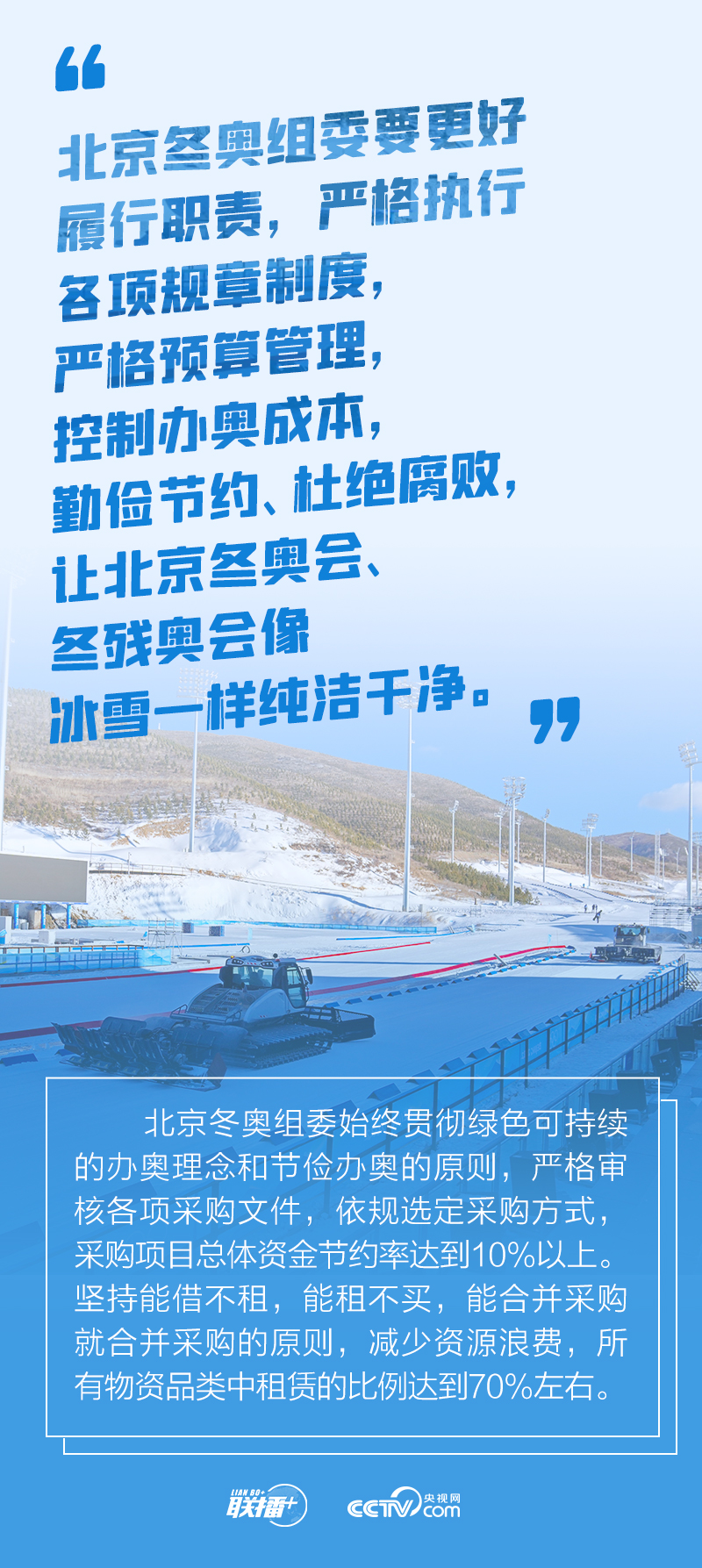 冬奧會(huì)籌辦過(guò)程中,總書記始終嚴(yán)格要求把勤儉節(jié)約作為“廉潔辦奧”的重要內(nèi)容。2021年1月20日召開(kāi)的會(huì)議進(jìn)一步提出要做好簡(jiǎn)化辦賽工作,從實(shí)際出發(fā),精簡(jiǎn)非必要環(huán)節(jié)、活動(dòng)和人員數(shù)量。