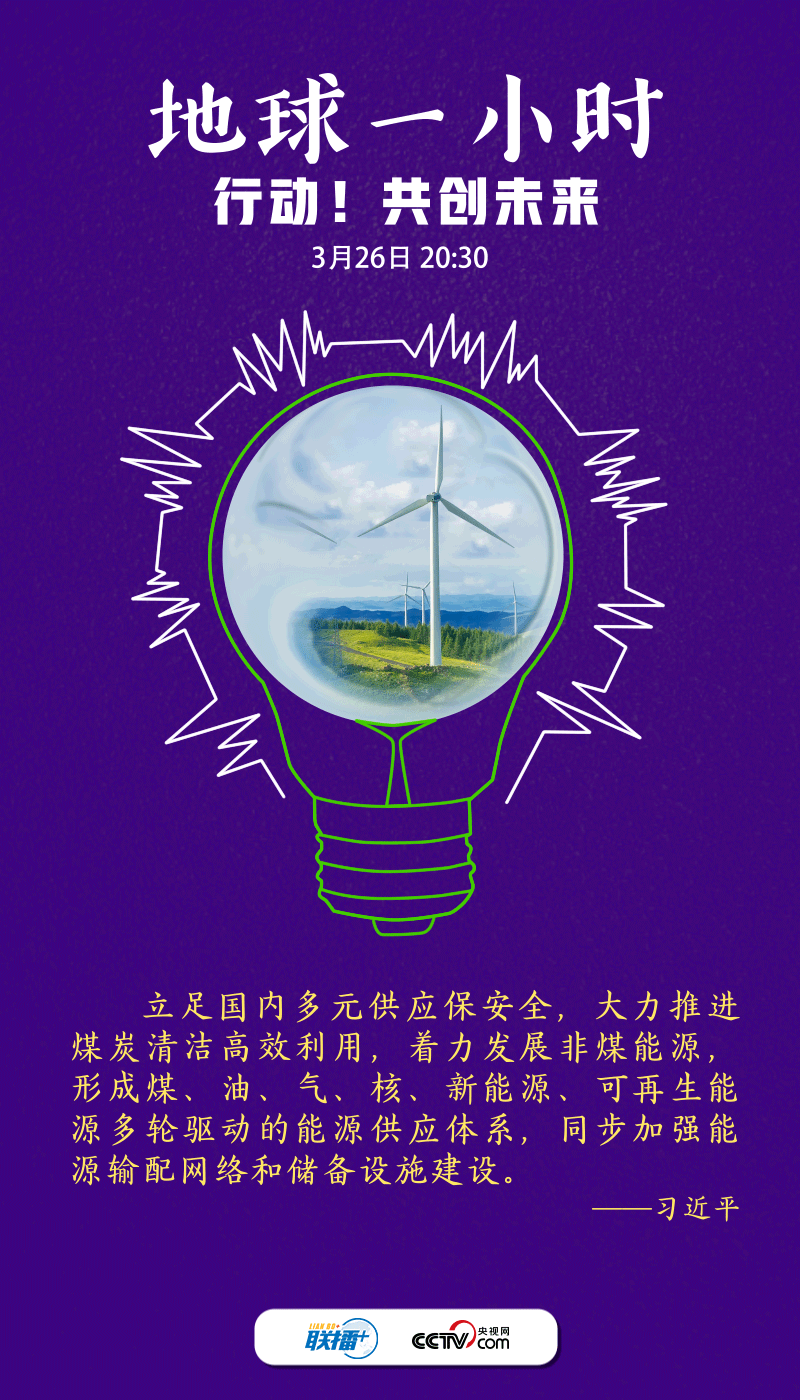 聯(lián)播+2022年3月26日是“地球一小時”活動日。今年的主題是“行動!共創(chuàng)未來”,呼吁世界各國在2030年之前,就自然保護(hù)、氣候變化和可持續(xù)發(fā)展等達(dá)成全球合作,讓自然向好,讓人類受益。