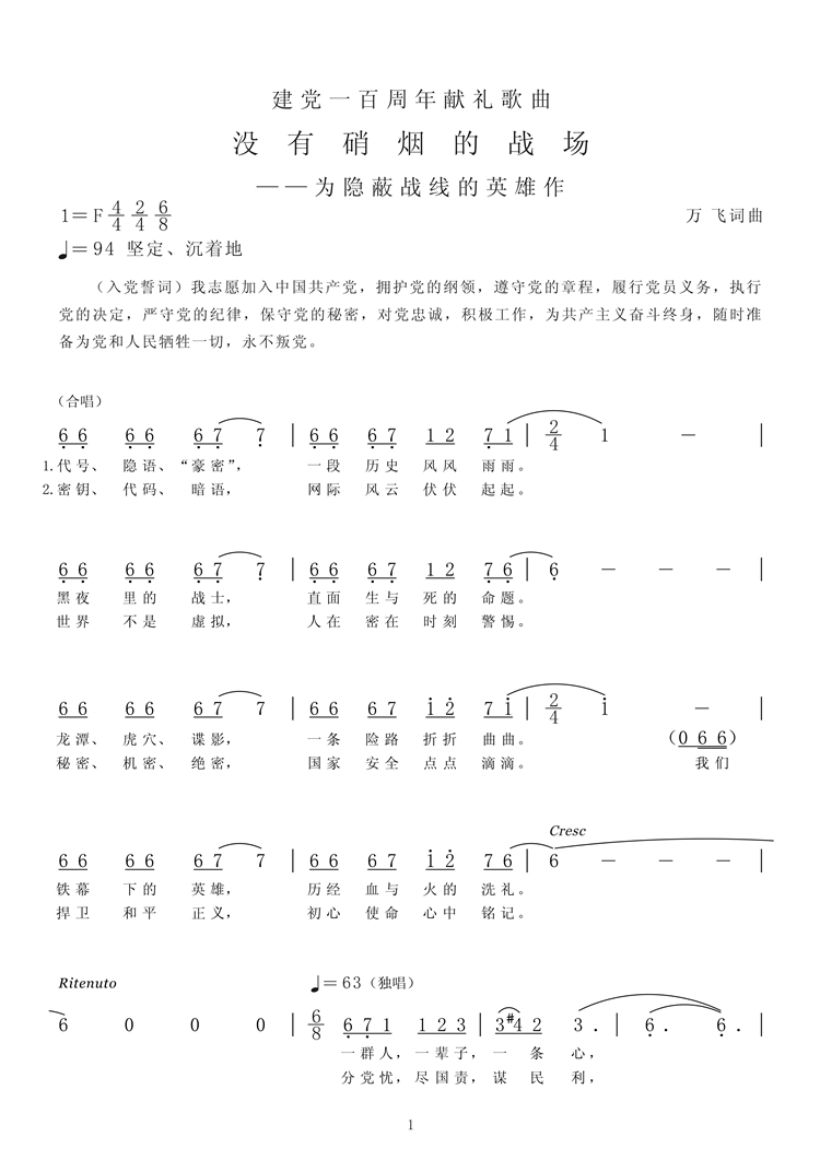 慶祝建黨百年獲獎歌曲作品選集——《沒有硝煙的戰(zhàn)場》歌詞。