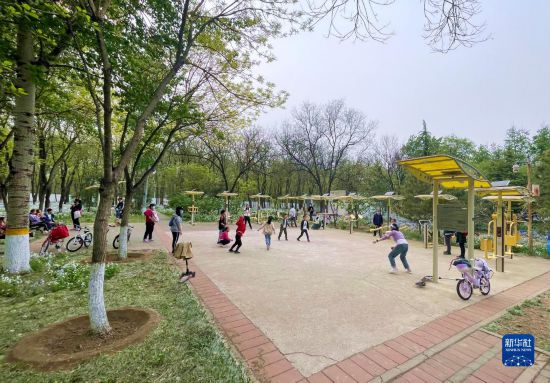 4月17日,市民在京城森林公園內(nèi)休閑運動。