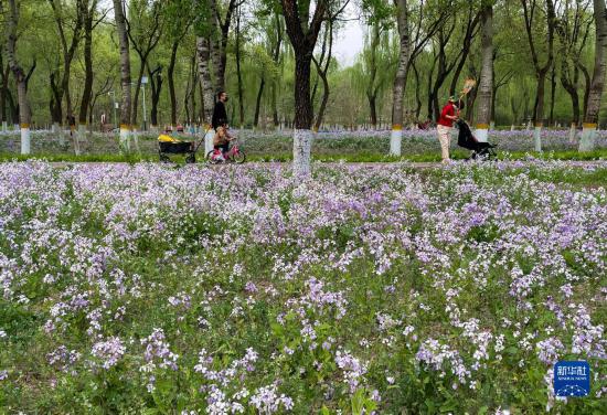 4月17日,市民帶著孩子在京城森林公園內(nèi)玩耍。