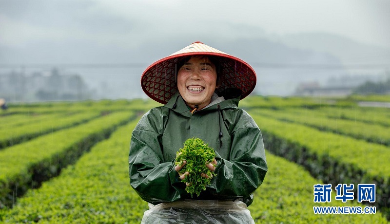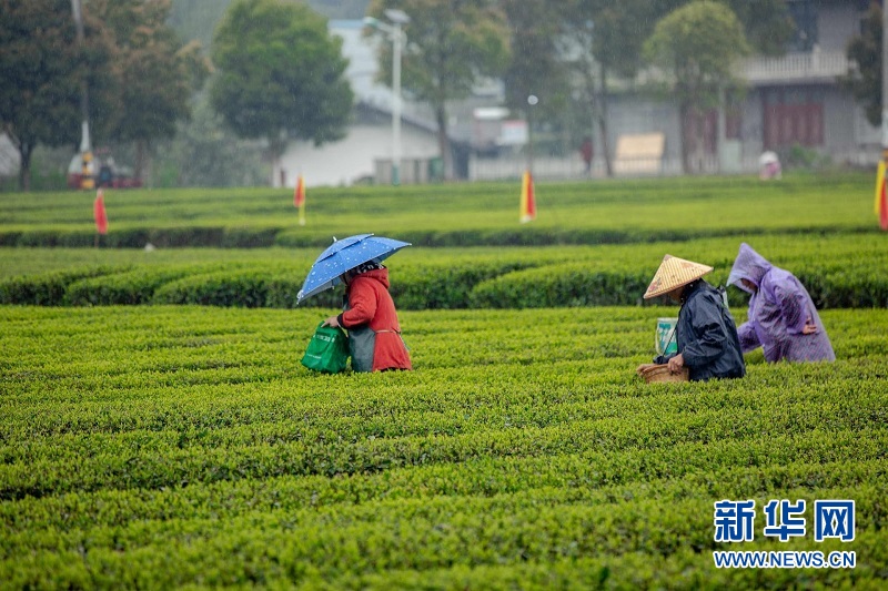 圖為湖北來鳳縣大河鎮(zhèn)桐子園村村民在采摘春茶。桐子園村村集體與茶葉公司簽訂茶葉鮮葉收購協(xié)議,采茶工資當(dāng)場發(fā)放,保證茶農(nóng)每天至少增收百余元。