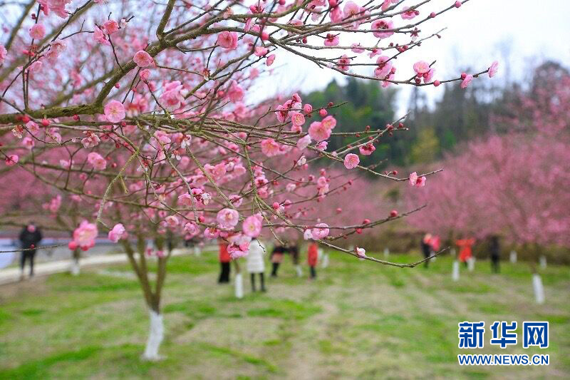 圖為湖北省來鳳縣革勒車鎮(zhèn)正南梅園梅花盛開,吸引不少前來游玩,為當(dāng)?shù)卮迕裨黾恿耸杖搿?/p>