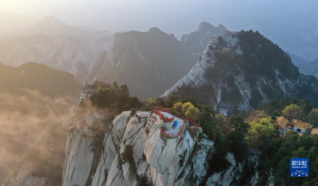 夕陽下的華山(4月28日攝,無人機(jī)照片)。新華社記者陶明攝