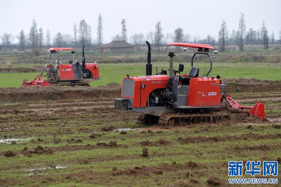 在江西省南昌縣蔣巷鎮(zhèn)大田農(nóng)社,兩臺(tái)無人旋耕機(jī)正在翻地作業(yè)。新華社記者 彭昭之?dāng)z
