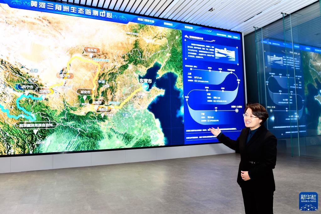 山東黃河三角洲國家級自然保護(hù)區(qū)生態(tài)監(jiān)測中心主任劉靜在介紹相關(guān)情況(2021年10月20日攝)。新華社記者郭緒雷攝