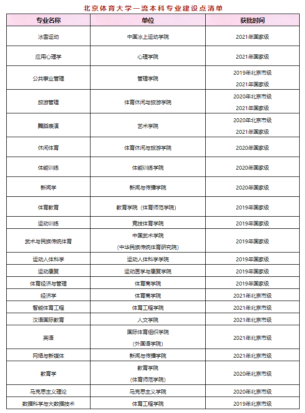 近日,教育部辦公廳公布了2021年度國(guó)家級(jí)和省級(jí)一流本科專(zhuān)業(yè)建設(shè)點(diǎn)名單。北京體育大學(xué)冰雪運(yùn)動(dòng)、應(yīng)用心理學(xué)、公共事業(yè)管理、旅游管理、舞蹈表演5個(gè)專(zhuān)業(yè)獲批國(guó)家級(jí)一流本科專(zhuān)業(yè)建設(shè)點(diǎn),經(jīng)濟(jì)學(xué)、智能體育工程、漢語(yǔ)國(guó)際教育、英語(yǔ)、網(wǎng)絡(luò)與新媒體5個(gè)專(zhuān)業(yè)獲批北京市級(jí)一流本科專(zhuān)業(yè)建設(shè)點(diǎn)。自2019年教育部實(shí)施一流本科專(zhuān)業(yè)建設(shè)“雙萬(wàn)計(jì)劃”以來(lái),學(xué)校共獲批一流本科專(zhuān)業(yè)建設(shè)點(diǎn)22個(gè),其中國(guó)家級(jí)14個(gè)、北京市級(jí)8個(gè),在2022年本科招生專(zhuān)業(yè)中一流專(zhuān)業(yè)建設(shè)點(diǎn)已覆蓋75%以上,今年錄取的本科新生中將有超過(guò)90%的同學(xué)進(jìn)入國(guó)家級(jí)、省級(jí)一流專(zhuān)業(yè)建設(shè)點(diǎn)學(xué)習(xí)。