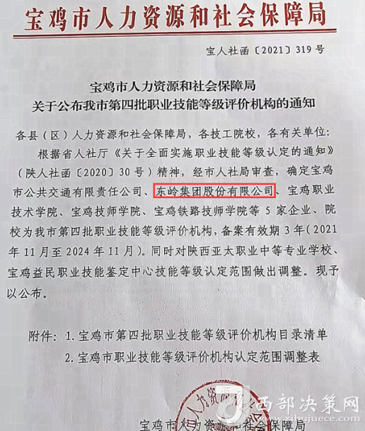 據(jù)悉,東嶺集團(tuán)技能等級(jí)評(píng)價(jià)機(jī)構(gòu)在做好企業(yè)內(nèi)部技能人才評(píng)價(jià)的同時(shí),還以職業(yè)技能等級(jí)評(píng)價(jià)機(jī)構(gòu)為依托,為寶雞市技能人才就業(yè)提供相關(guān)服務(wù)。(邱晨)